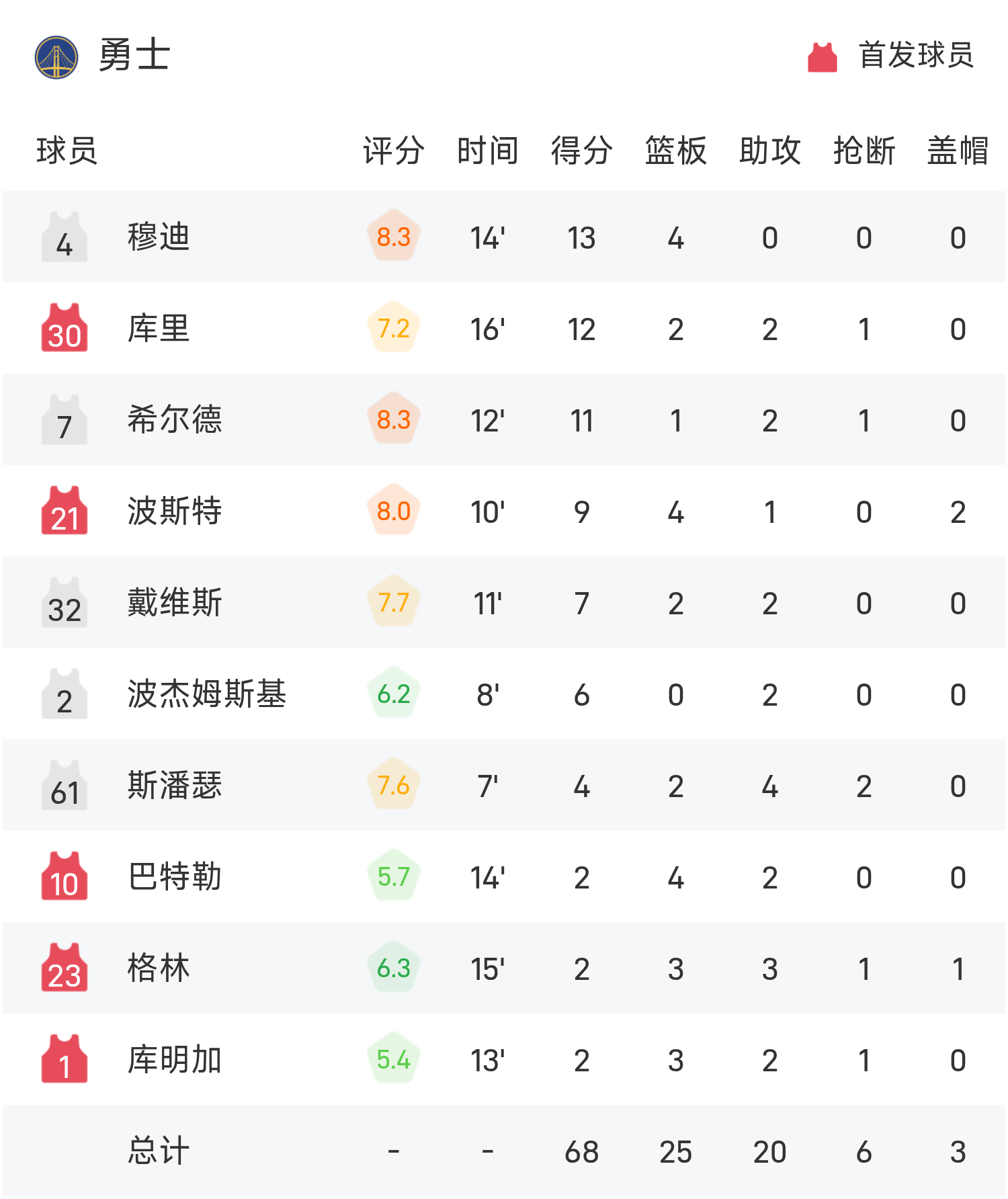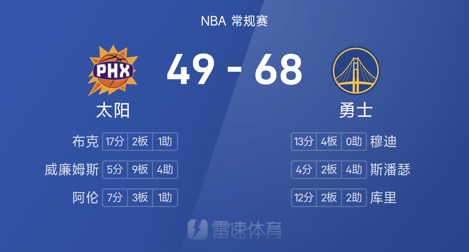 ช่วงพักครึ่ง NBA: มูดี้ส์ทำ 13 แต้ม, วอร์ริเออร์ส 10 แต้ม และวอร์ริเออร์สนำเดอะซันส์ 68-49