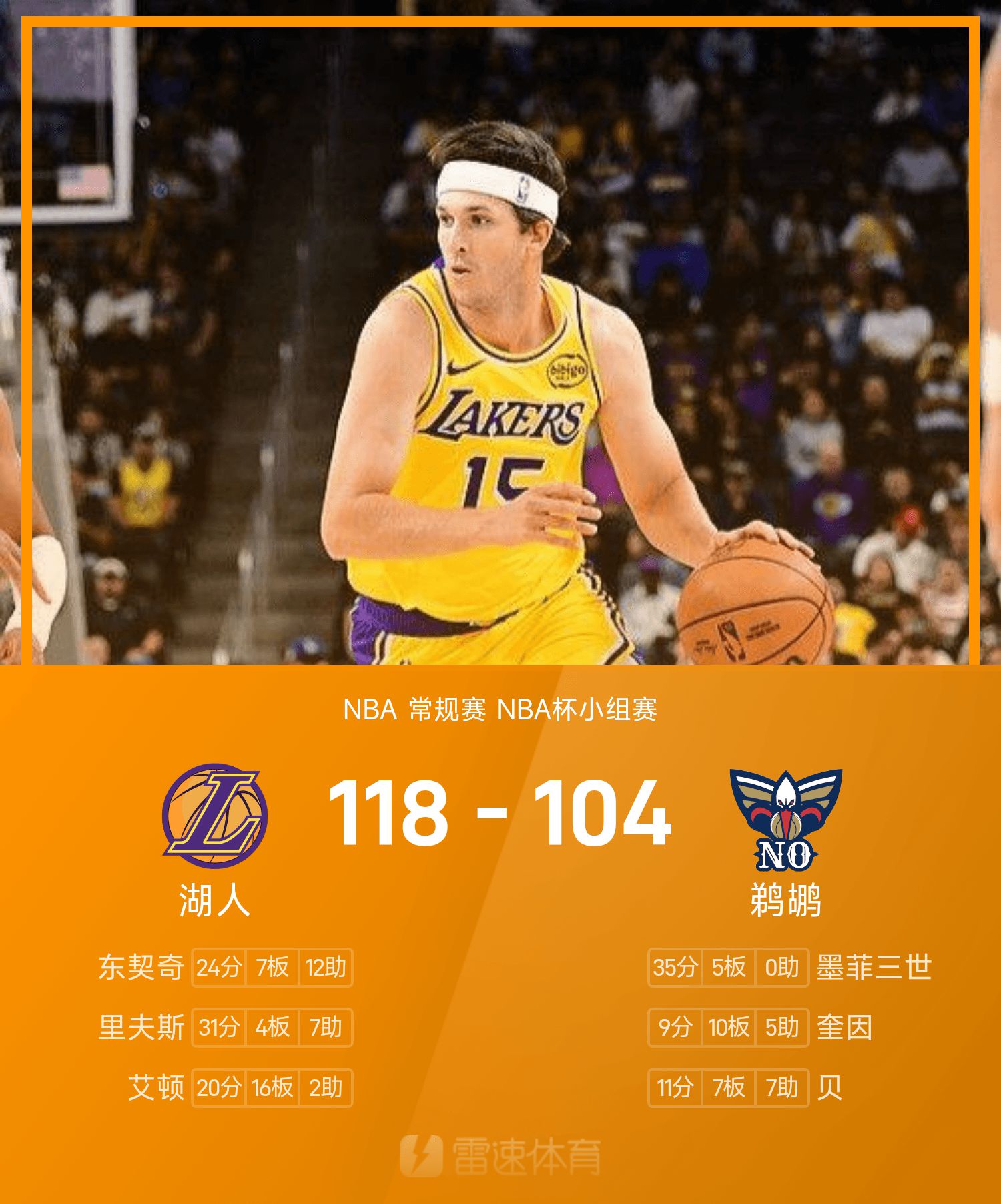 Rivers ทำคะแนนได้อย่างมีประสิทธิภาพ 31 แต้ม 4 รีบาวน์ และ 7 แอสซิสต์ เพื่อช่วยให้ทีม Lakers ชนะ Murphy III ไม่สามารถบันทึกเกมได้ด้วย 35 แต้ม