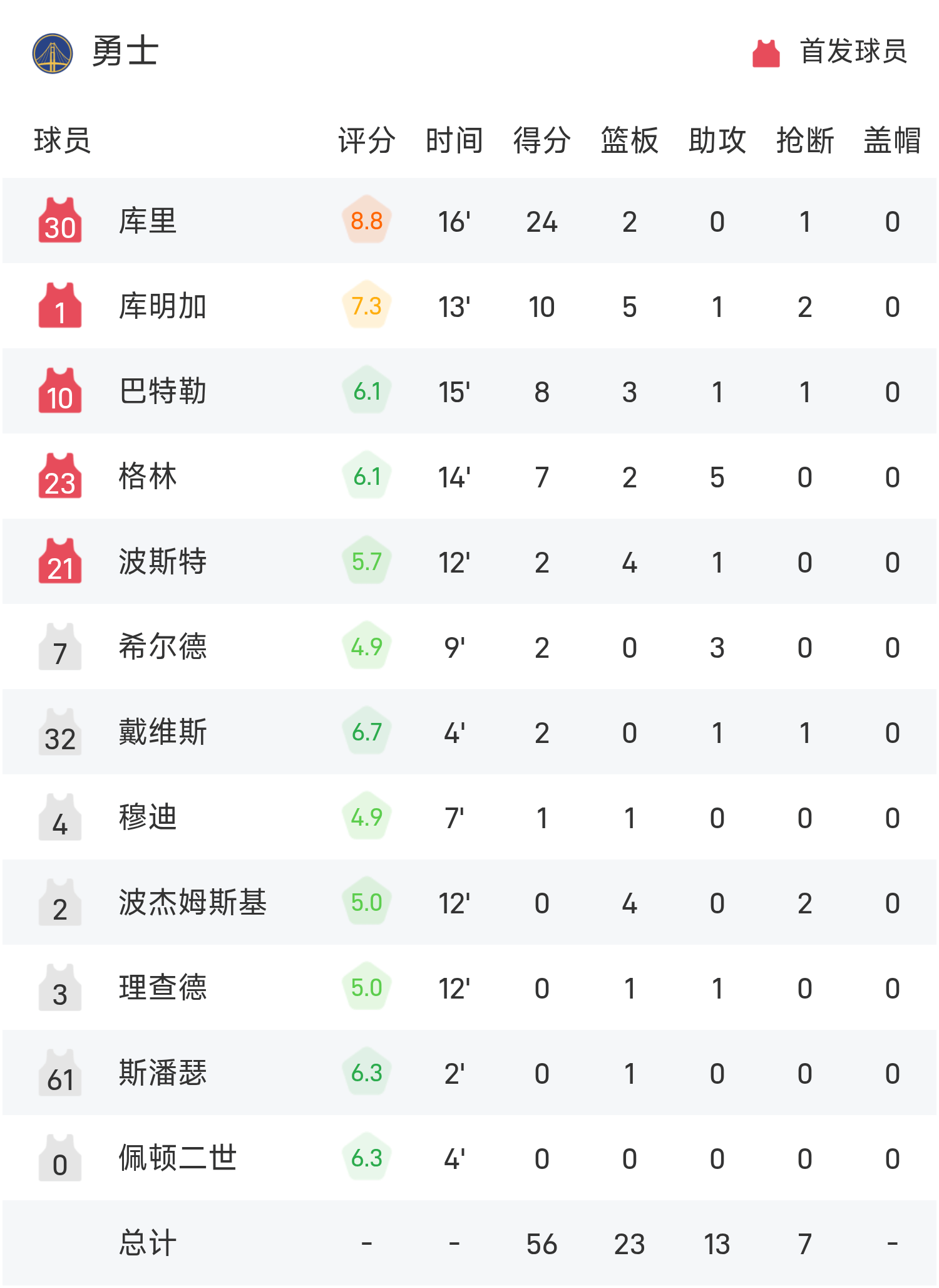 ช่วงพักครึ่ง NBA: ยาง แฮนเซ่น ยิง 0 จาก 1 นัด มี 1 รีบาวด์ และ 1 ผิดพลาด เคอร์รี่ ทำ 24 แต้ม โดยมี 3 พอยน์เตอร์ 5 ครั้ง เทรลเบลเซอร์ส 69-56 วอร์ริเออร์ส