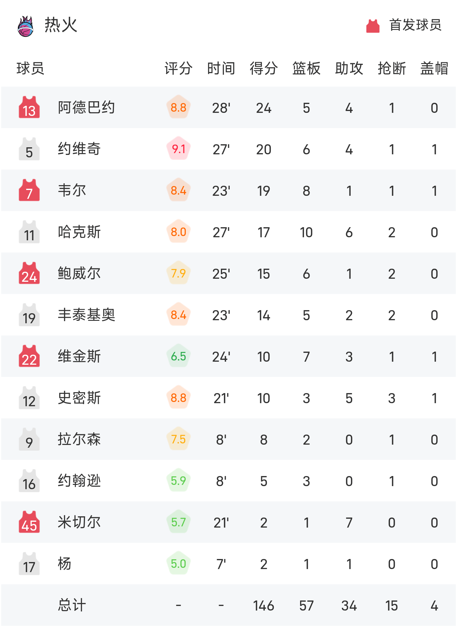 รายงาน NBA อเดบายอร์ 24 แต้ม ฮีตเอาชนะ กริซลี่ส์ 146-114