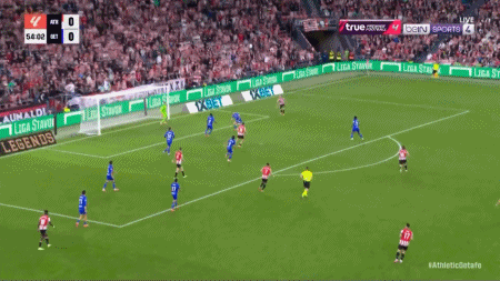 54’ กูรูเซต้าโหม่งบอล มุ่งหน้าสู่ประตูในโซน 3 วินาที แต่บอลถูกผู้รักษาประตูสกัดไว้