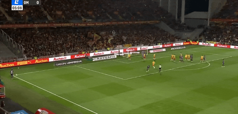 6' มาร์กเซยโจมตีด้วยบอลข้างสนาม กรีนวูดพลาดลูกยิงที่หน้าประตูและถูกเรียกว่าล้ำหน้า