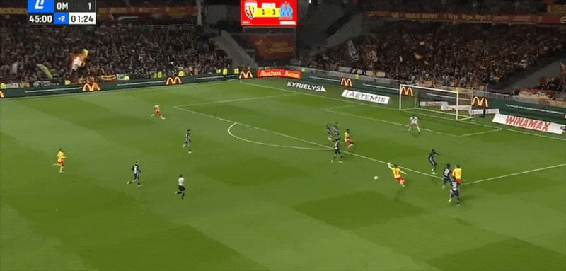 90+2' ซานกาเรเผชิญหน้ากับผู้รักษาประตูเพียงลำพังและถูกสกัดกั้น และเลนส์ก็พลาดโอกาสที่จะผนึกชัยชนะไว้ล่วงหน้า