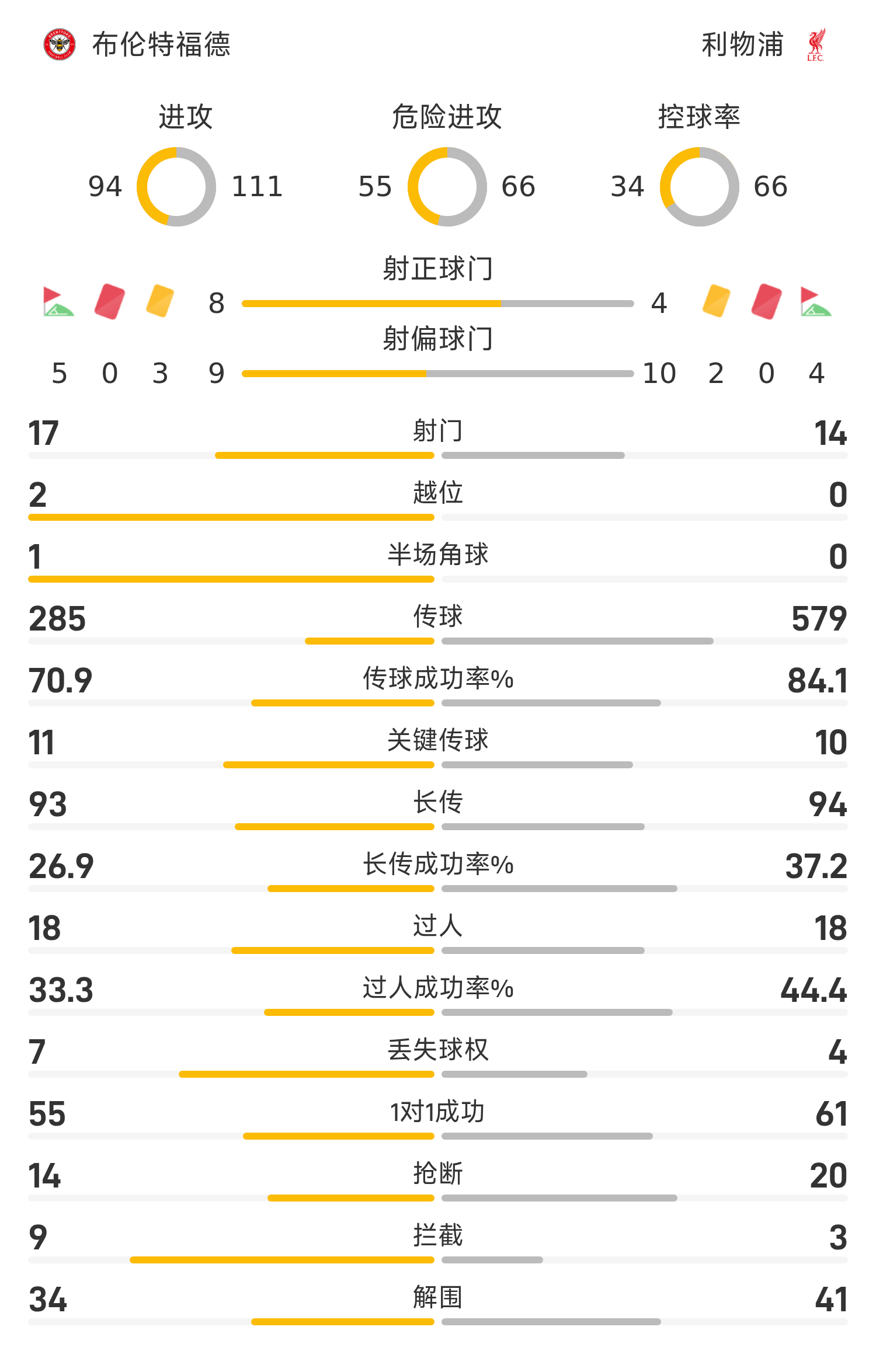 ในนาทีที่ 58 ของครึ่งหลัง ฟาน ไดค์ ถูกตัดสินให้ระยะ 12 หลาอย่างผิดกฎหมาย ติอาโก้ยิงจุดโทษและเบรนท์ฟอร์ดขึ้นนำเป็น 3-1 โซบอสไลช่วยซาลาห์ทำประตูก่อนจบเกม แต่ก็ไม่ได้ช่วยผลการแข่งขัน สุดท้ายลิเวอร์พูลแพ้เบรนท์ฟอร์ด 2-3 ในเกมเยือนและพบกับความพ่ายแพ้ในลีกนัดที่ 4 ติดต่อกัน