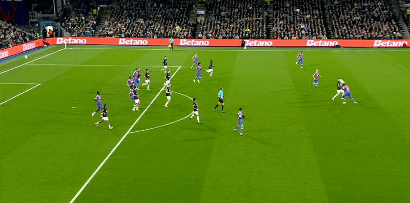 รายชื่อผู้เล่นตัวจริงของคริสตัล พาเลซ: 1-เฮนเดอร์สัน, 6-กีย์, 5-ลาครัวซ์, 26-ริชาร์ดส, 19-ฮิวจ์ส, 8-เลอร์มา, 7-ซาร์, 2-มูโนซ, 3 -มิทเชล, 10-ปิโน, 14-มัตเตต้า