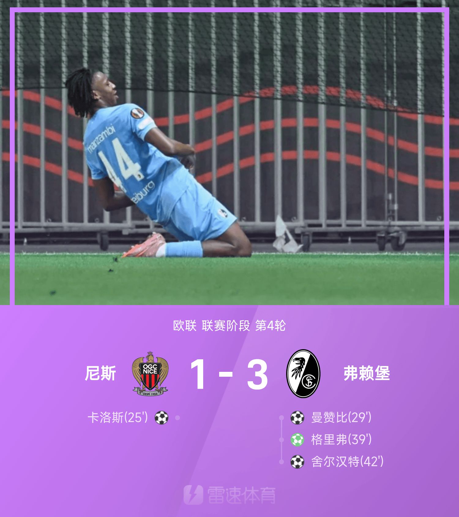 รายงานยูโรป้า ลีก กรีฟยิง, เชอร์ฮานต์ยิงประตู, ไฟร์บวร์ก 3-1 นีซ