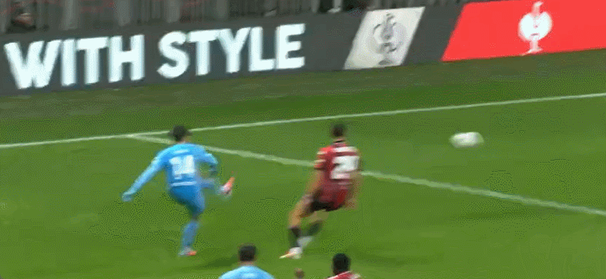 35’ เปรียบเสมือนความช่วยเหลือจากพระเจ้า! ดิยุฟเซฟสองช็อตติดต่อกันจากคู่ต่อสู้ตรงหน้าประตู