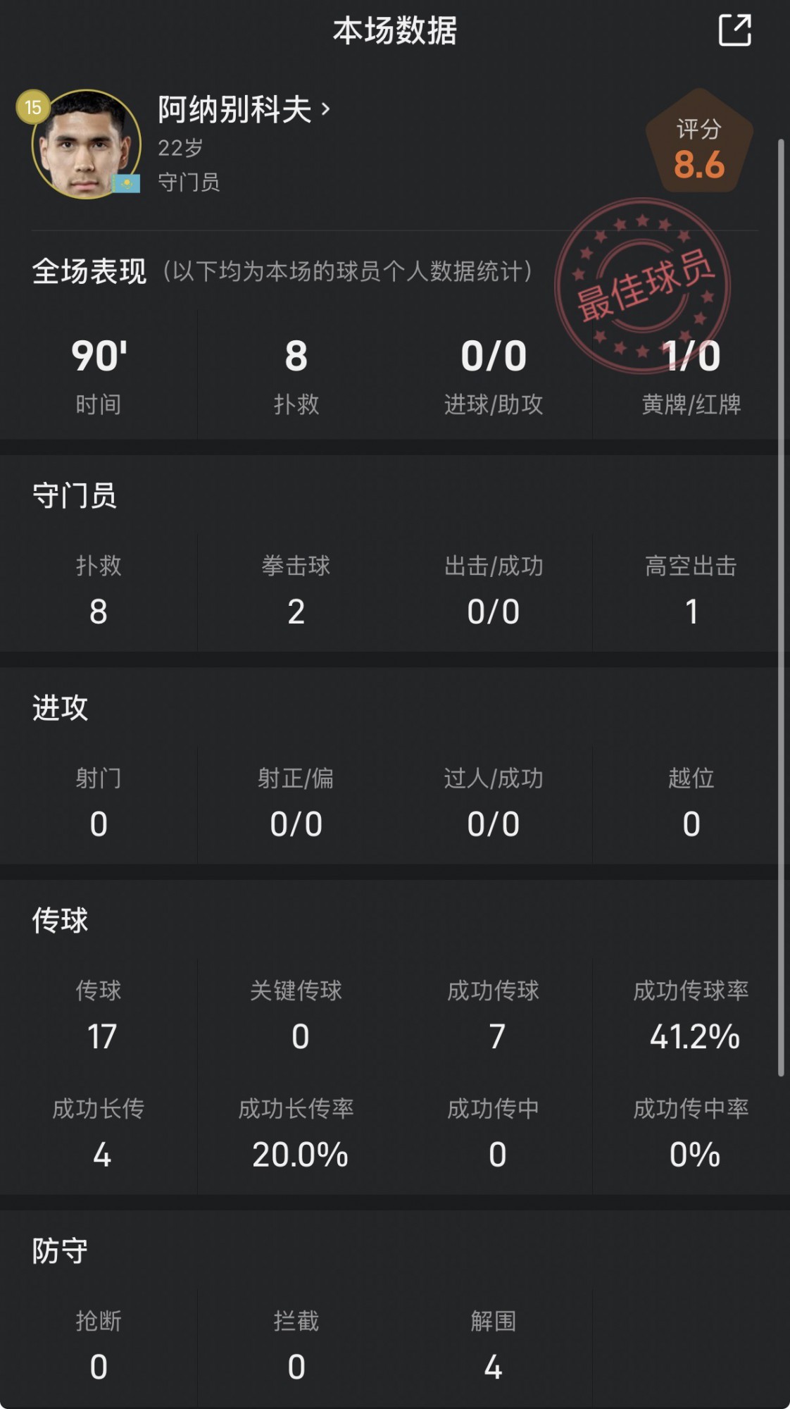 6686 ข่าวกีฬาวันที่ 15 พฤศจิกายน ในรอบที่ 9 ของกลุ่ม J ของรอบคัดเลือกยุโรปโลก คาซัคสถานเสมอกับเบลเยียมด้วยสกอร์ 1-1 ที่สนามทีมเหย้า อนาเบคอฟ ผู้รักษาประตูคาซัคสถานเล่นอย่างกล้าหาญและเซฟได้ 8 ครั้งในเกม