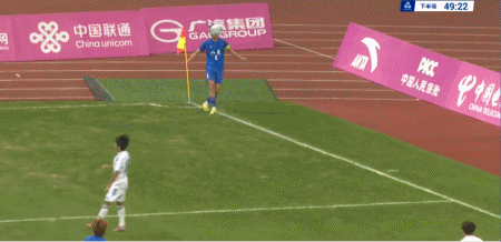 49’ บอลข้างสนามของ เฉิน เจ๋อซือ ผ่านเข้าไปในโซนสามวินาที หวัง เทียนหยู โหม่งบอล แล้วบอลพุ่งสูงกว่าคานไปไปติดตาข่าย
