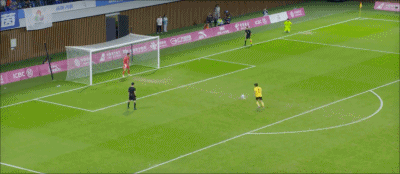 19' จงเหวิน หันกลับมาและเลี้ยงบอลในโซนสามวินาทีแล้ววอลเลย์ และบอลพลาดเป้า