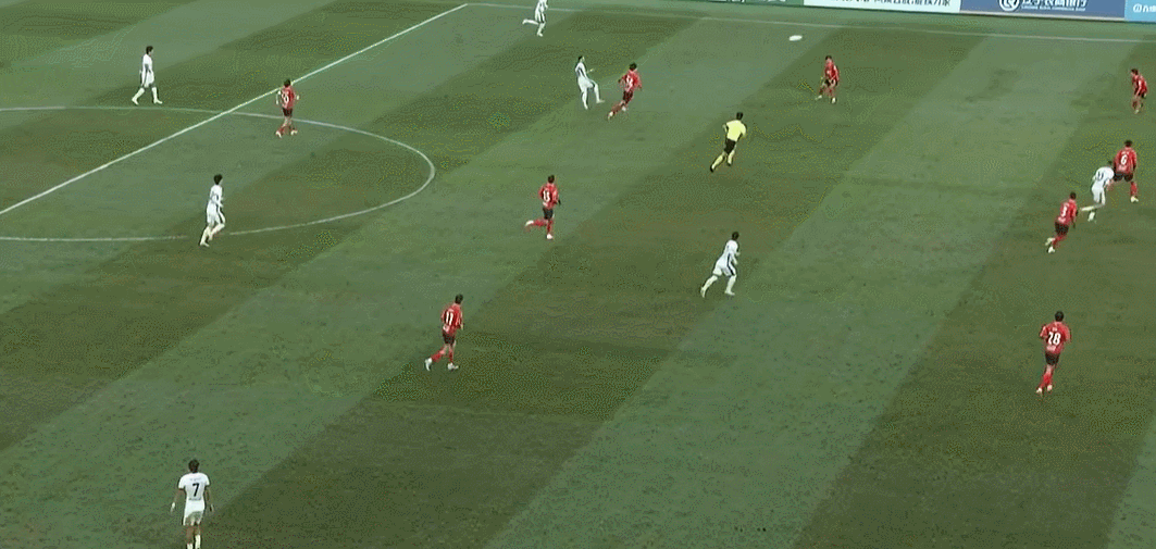 64’ เฉิน ปินปิน รับบอลจ่ายในพื้นที่สามวินาทีและเริ่มกวาดบอล Liu Weiguo เก็บบอลได้อย่างมั่นคง