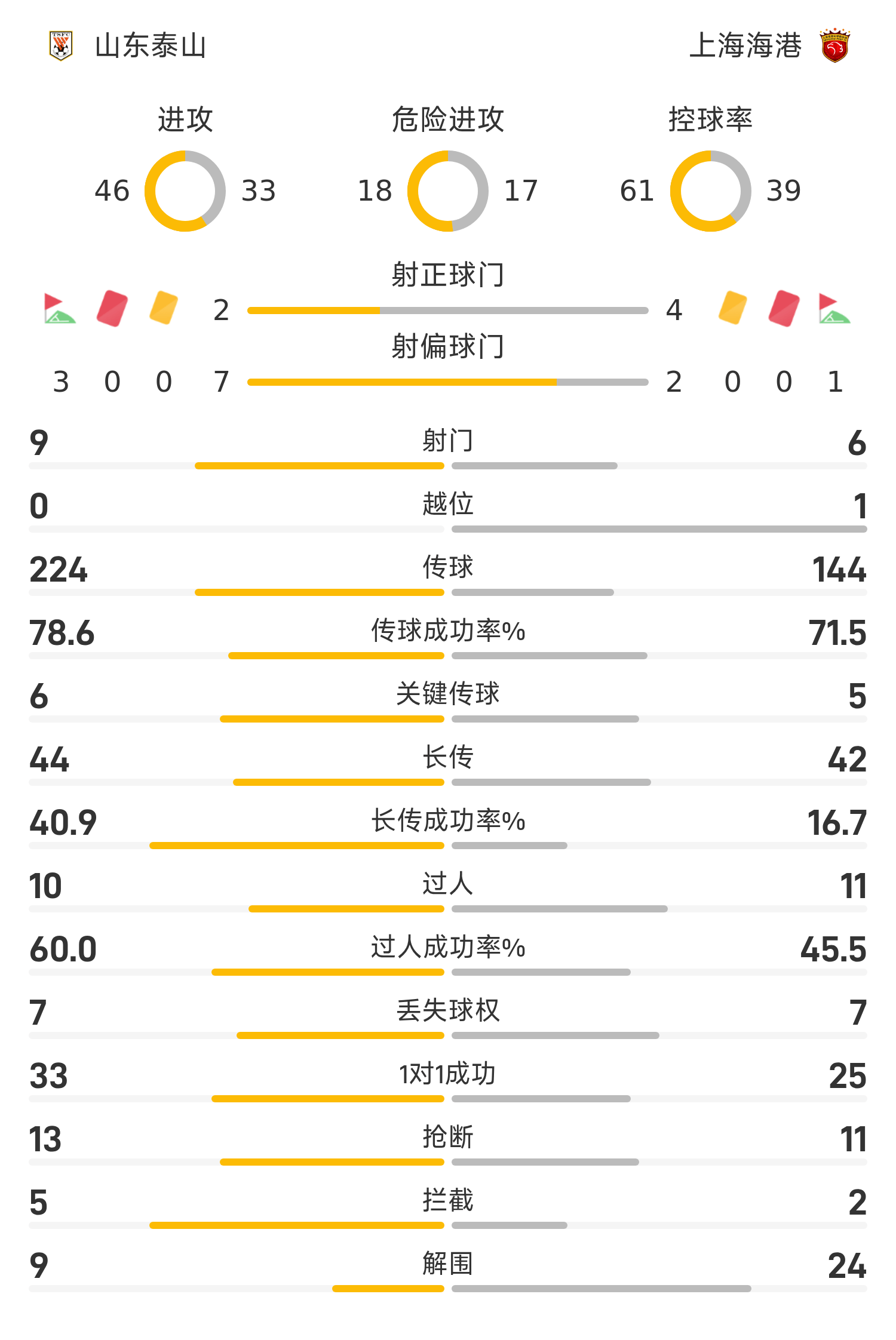 20' หวัง ต้าเล่ย์ สกัดลูกยิงของเลโอนาร์โด้ การยิงตามมาของ ไห่กัง เข้าประตูว่าง ได้รับการแก้ไขโดยกองหลังไท่ซาน