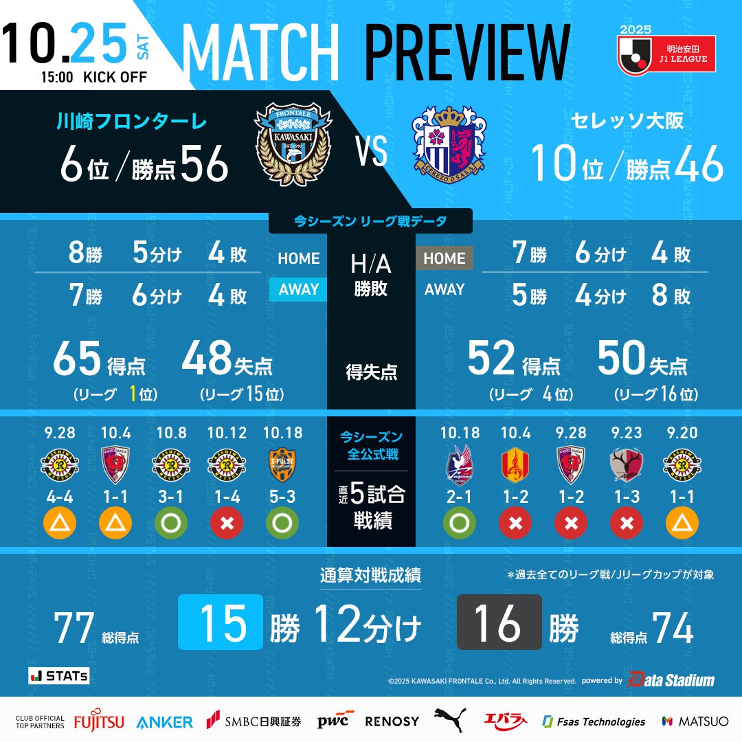 ทั้งสองทีมพบกัน 10 ครั้งที่ผ่านมา โอซาก้า ซากุระ ชนะ 4 เสมอ 4 แพ้ 2 มีเปรียบเล็กน้อย ปัจจุบันทั้งสองทีมไม่มีอะไรจะขอแล้ว เรามารอดูกันว่าพวกเขาจะสามารถนำการต่อสู้เพื่อยิงประตูสุดมันส์มาสู่แฟนๆ ได้หรือไม่