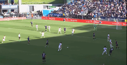 26’ ผู้รักษาประตูโอ๊คแลนด์ตีออกทันเวลาและช่วยทีมด้วยการช่วยชีวิตคู่ต่อสู้เพียงลำพัง