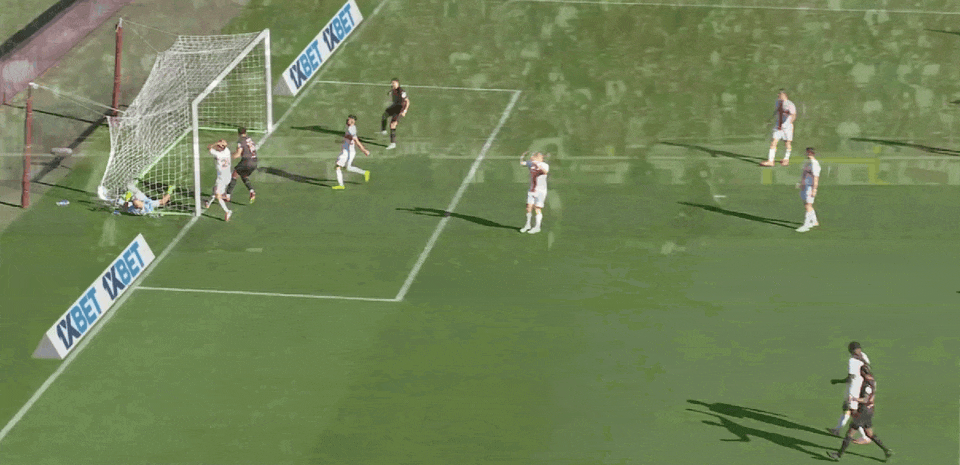 90+6’ คอร์เน่ที่พลาดจุดโทษระยะ 12 หลาในรอบที่แล้ว ถูกสกัดกั้น และเจนัวพลาดโอกาสอันยอดเยี่ยม